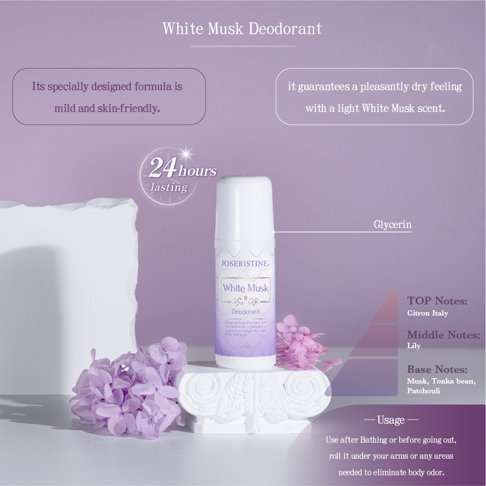 Its specially designed formula is mild and skin-friendly, it guarantees a pleasantly dry feeling with a light White Musk scent.