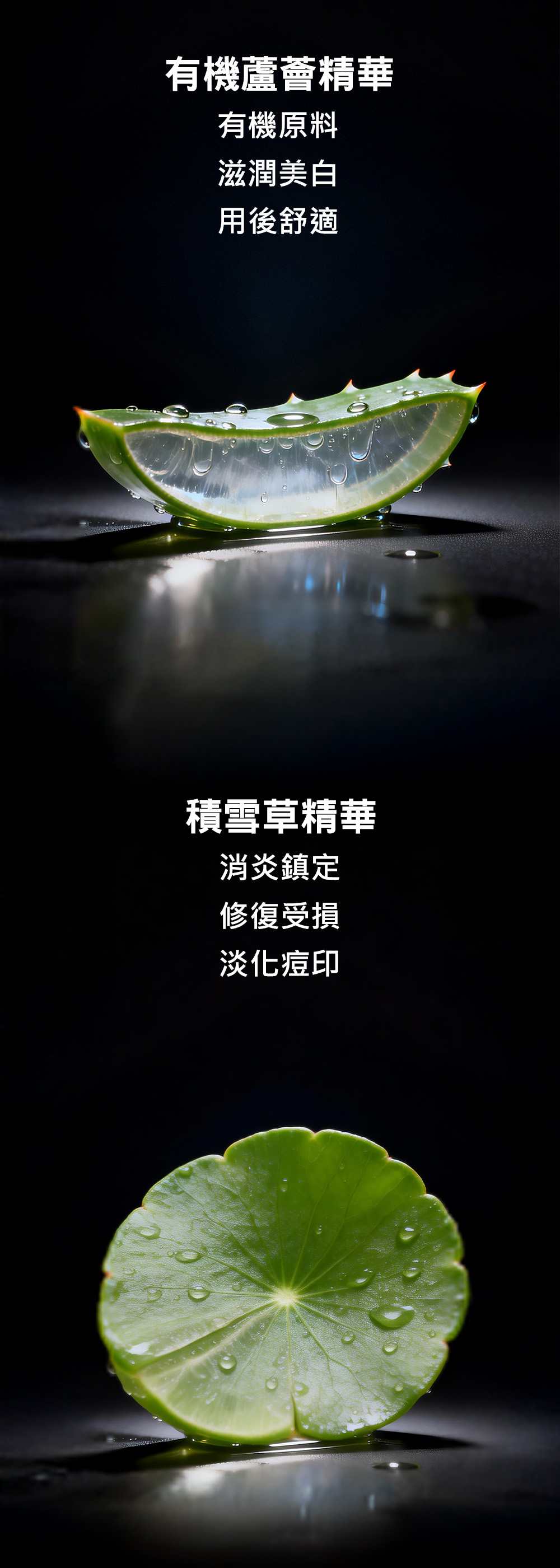 主要成分:有機蘆薈精華、積雪草精華、4D 透明質酸、蔗糖