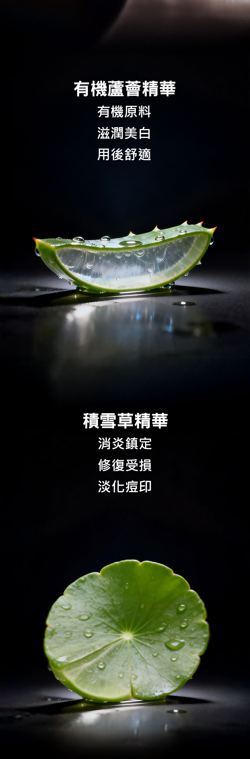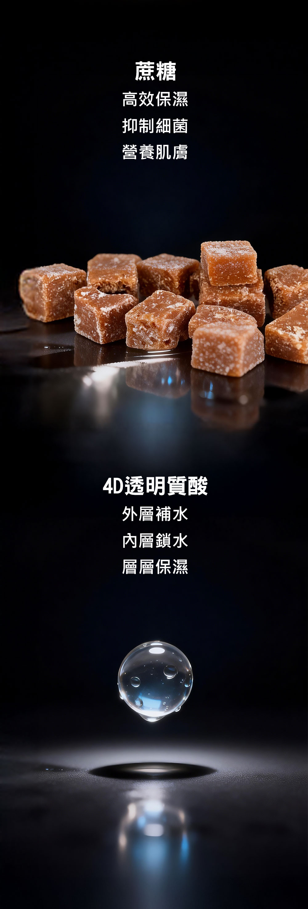 主要成分:有機蘆薈精華、積雪草精華、4D 透明質酸、蔗糖