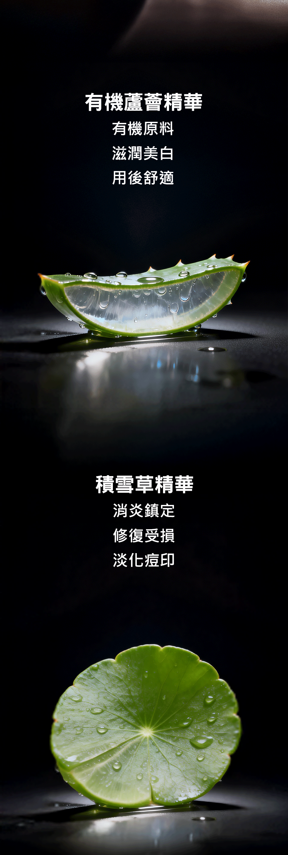 主要成分:有機蘆薈精華、積雪草精華、蔗糖、甘油