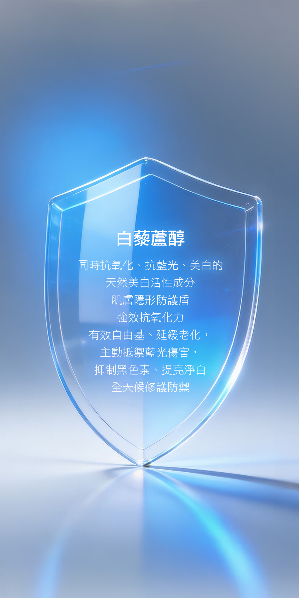 主要成分:白藜蘆醇、可可3C屏護因子、抗壞血酸棕櫚酸酯(維生素C)、酵母精華、仙人掌精華、透明質酸、海藻糖、維他命原B5