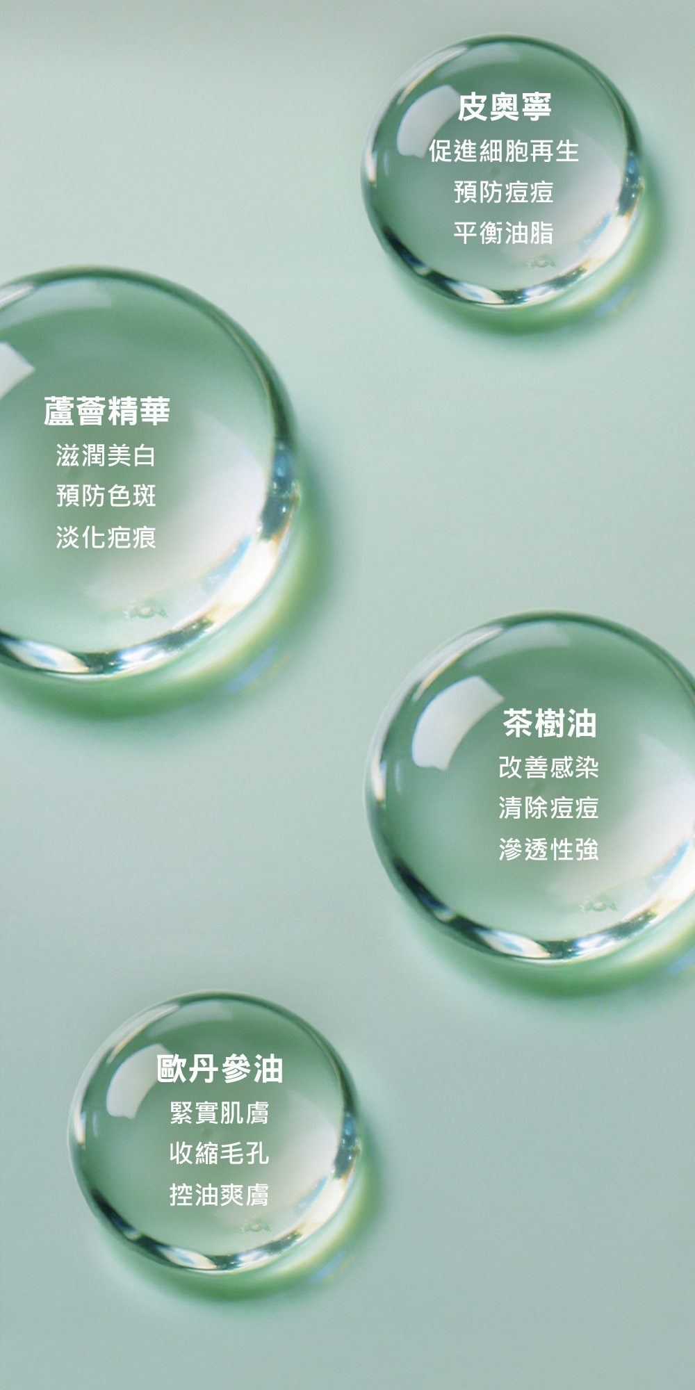 皮奧寧、蘆薈精華、茶樹油、快樂鼠尾草香薰油
