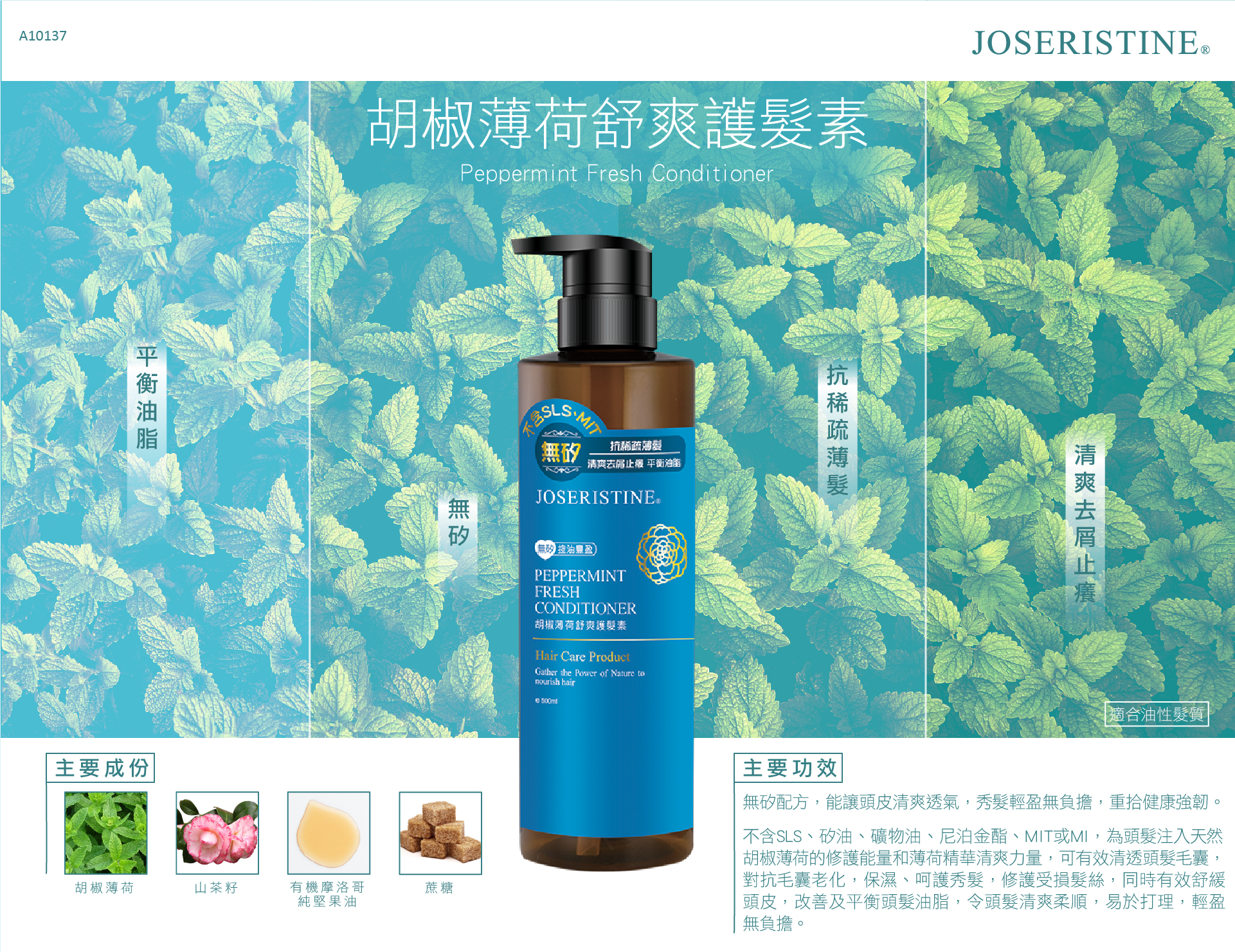 無矽 無矽配方,能讓頭皮清爽透氣,秀髮輕盈無負擔,重拾健康強韌。 無矽護髮配方,不含SLS、矽油、礦物油、尼泊金酯、MIT或MI,為頭髮注入天然胡椒薄荷的修護能量和薄荷精華清爽力量,可有效清透頭髮毛囊,對抗毛囊老化,保濕、呵護秀髮,修護受損髮絲,同時有效舒緩頭皮,改善及平衡頭髮油脂,令頭髮清爽柔順,易於打理,輕盈無負擔。
