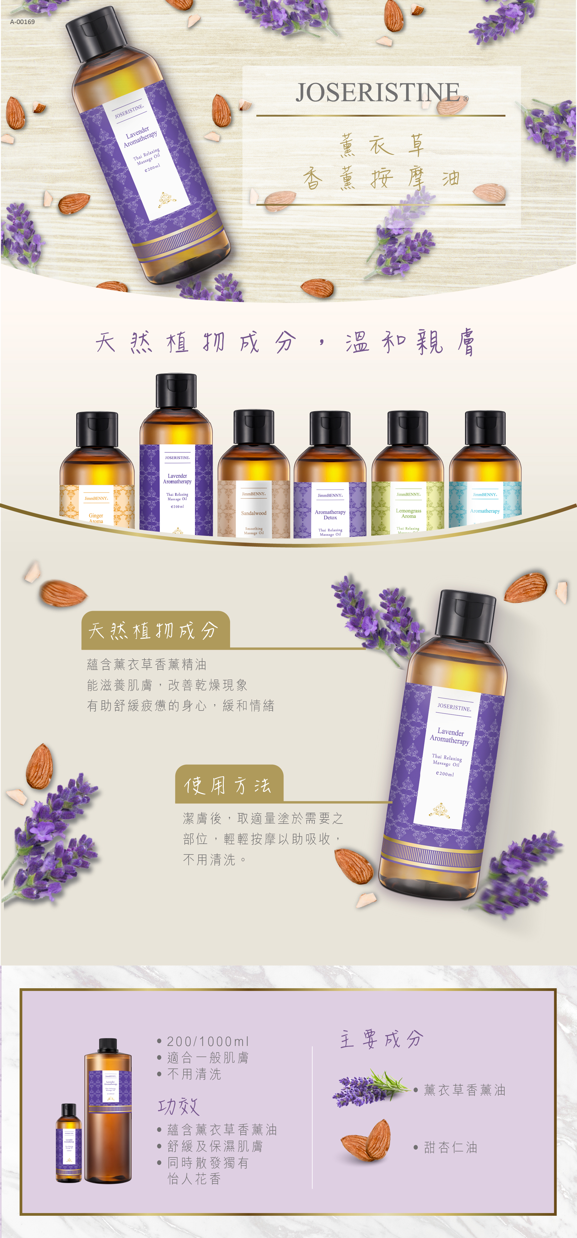 薰衣草香薰油、甜杏仁油、橄欖油