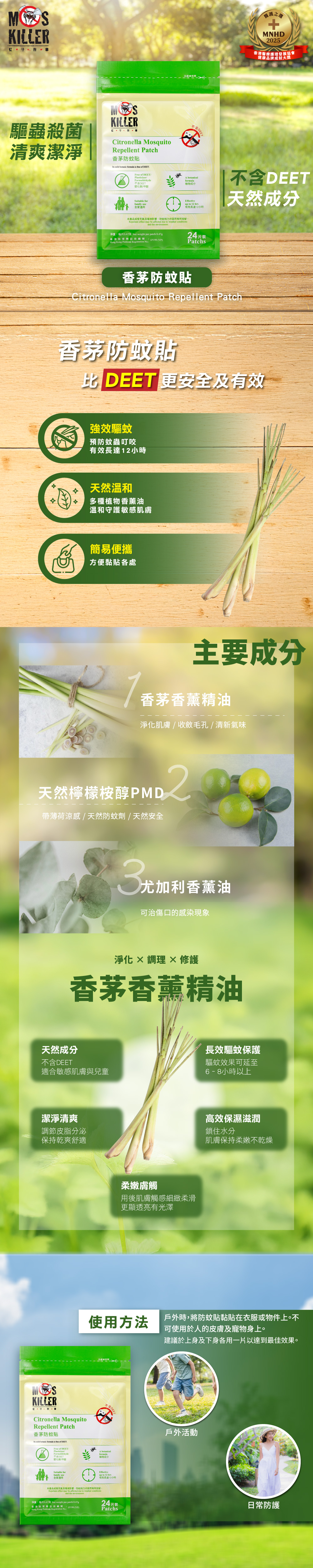 主要成份:香茅油8% w/w 桉樹油2% w/w