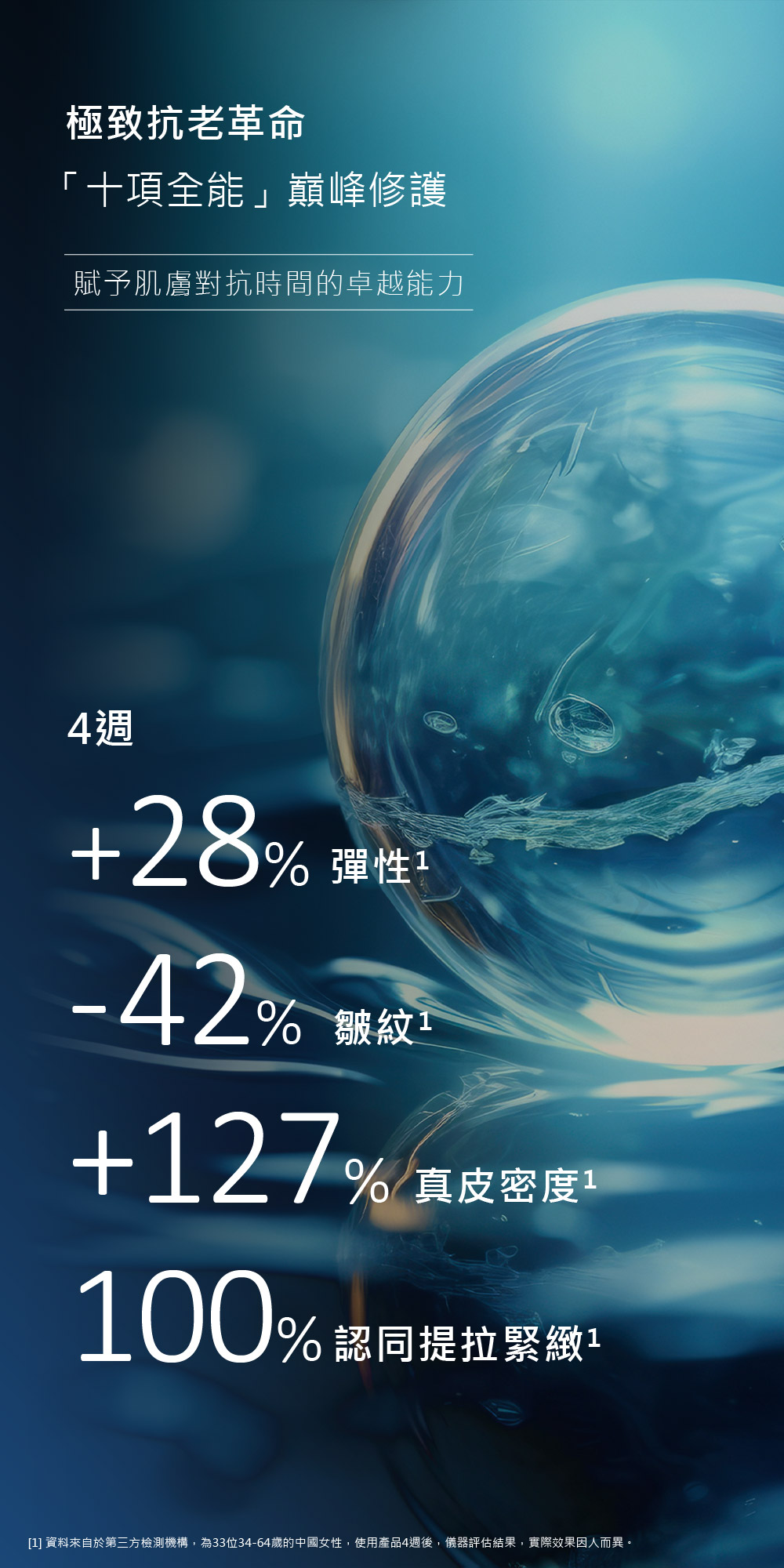 [2] 資料來自於第三方檢測機構,為33位34-64歲的中國女性,使用產品4週後,儀器評估結果,實際效果因人而異。