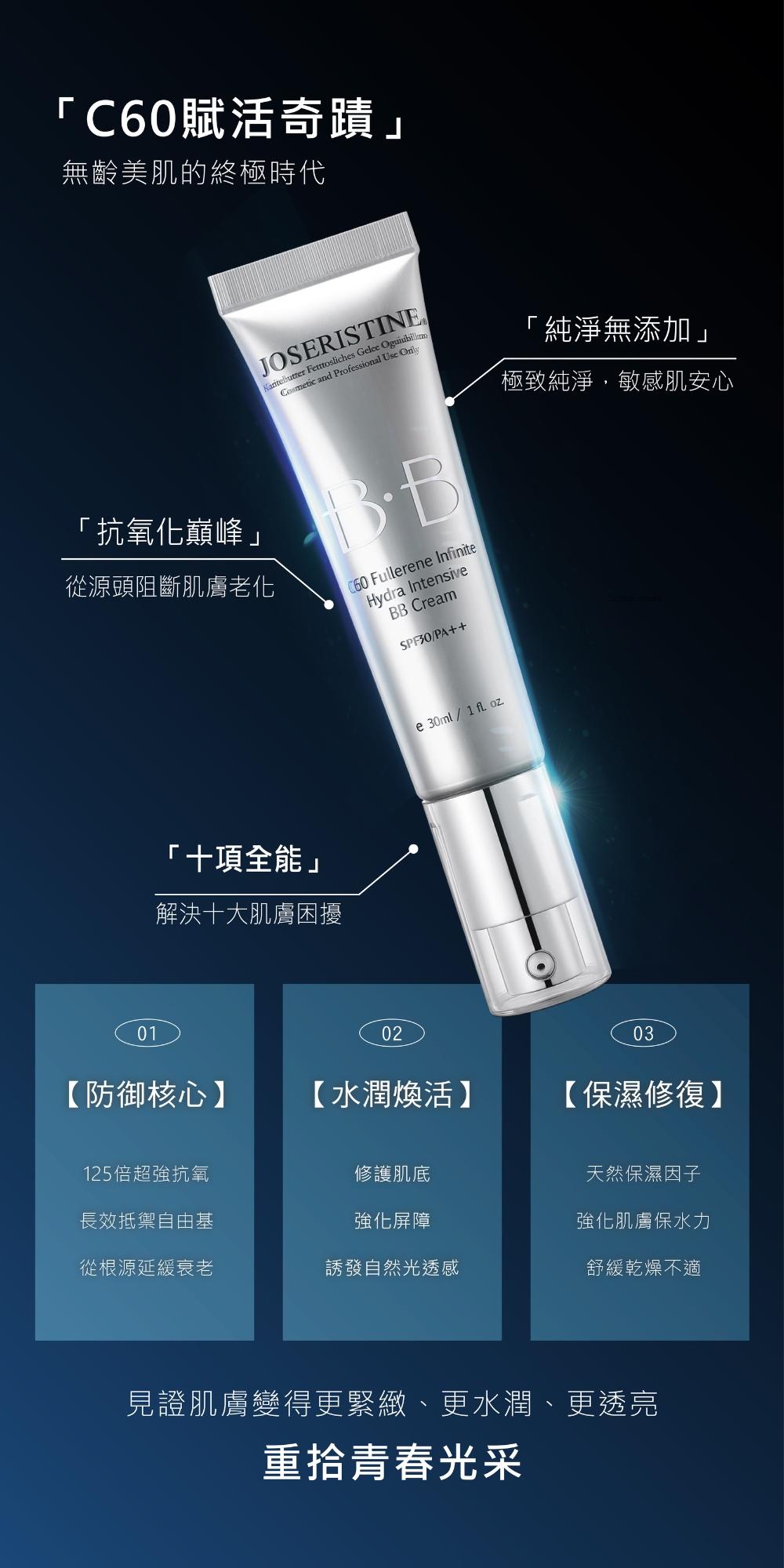 - 採用日本C60富勒烯,強效抗氧化