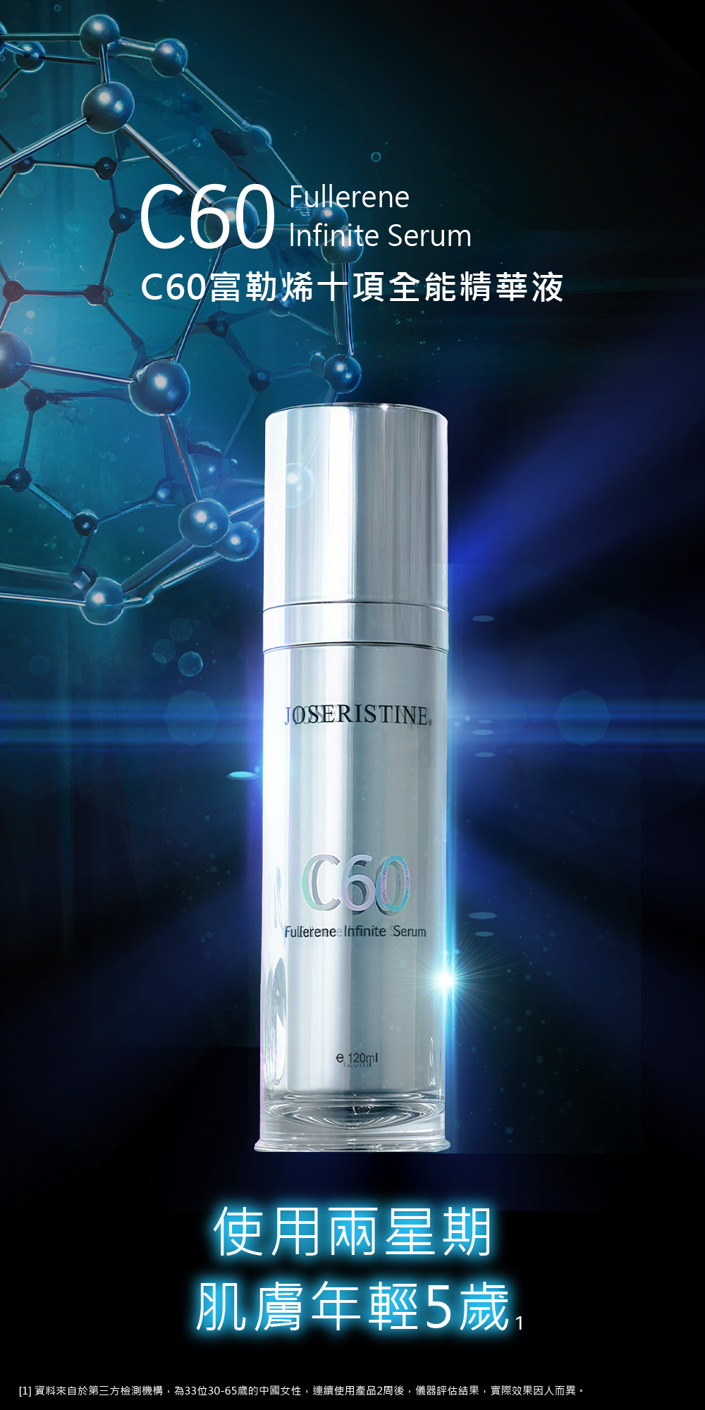 全新升級配方,不添加防腐劑;特別採用富勒烯,其抗氧化功能是維他命C的125倍,強效清除自由基,從而擊退鬆弛、乾燥、色斑、皺紋、暗啞等各種肌膚問題,全面對抗肌膚衰老。另特別添加透明質酸,為肌膚即時補充水分,提供長效滋養。