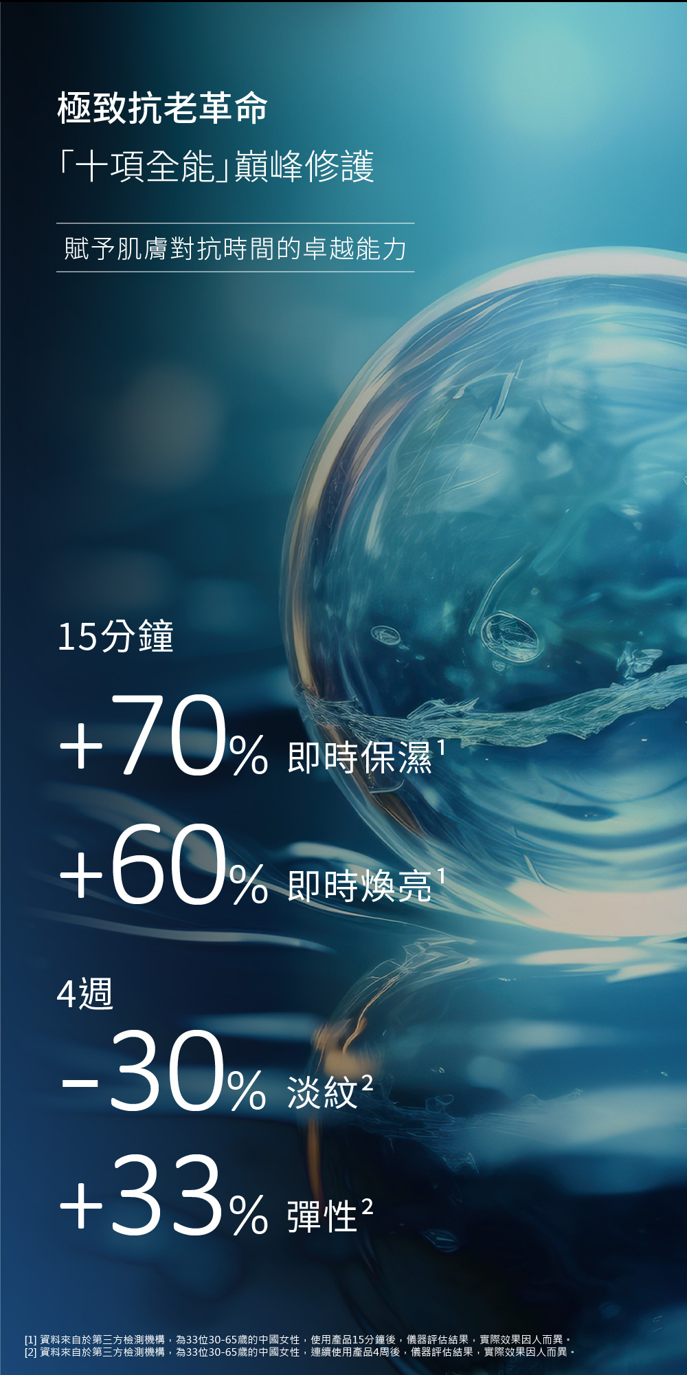 [2] 資料來自於第三方檢測機構,為33位34-64歲的中國女性,使用產品15分鐘後,儀器評估結果,實際效果因人而異。